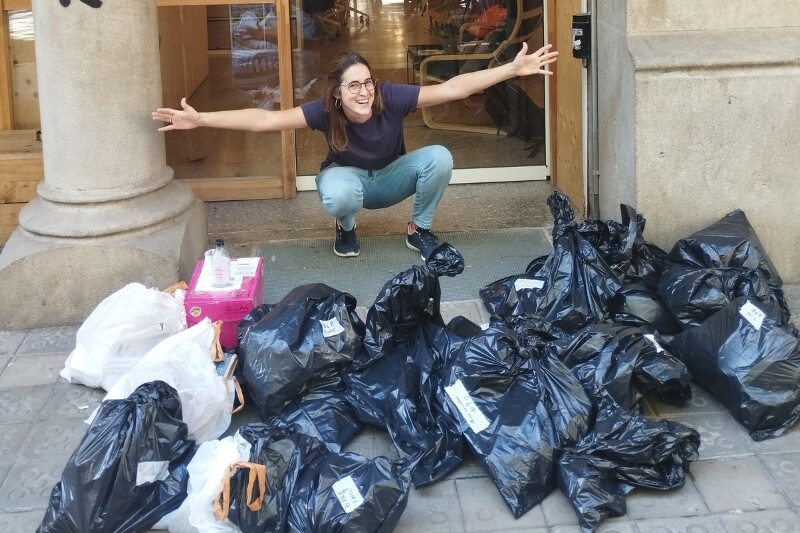 - For 1 hour we did a collection on the beach in Barcelona with our plogging kit: tongs, bags and reusable gloves.