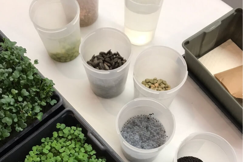 We planted seeds and seasonal seedlings in pots for further cultivation.